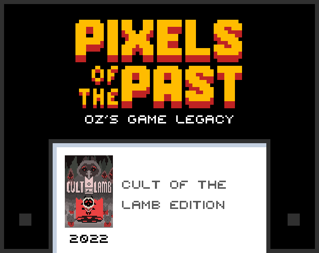 Created as part of the 2025 design challenge: Pixels of the Past. This small pixel art game is a tribute to Cult of the Lamb. It was created in GDevelop using a provided template for level layout. The art aims to keep a similar style as the original game, referencing directly from in-game assets and items. The level mechanics and layout are an edited version of the provided template, with the addition of an attack mechanic and animation.